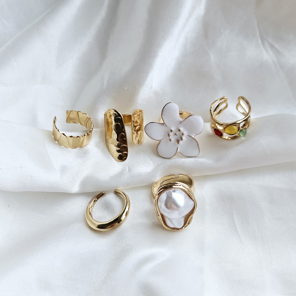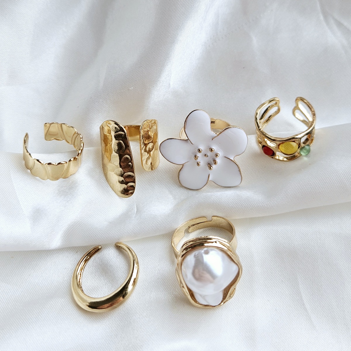 Baltos gėlytės ir perlo žiedų rinkinys