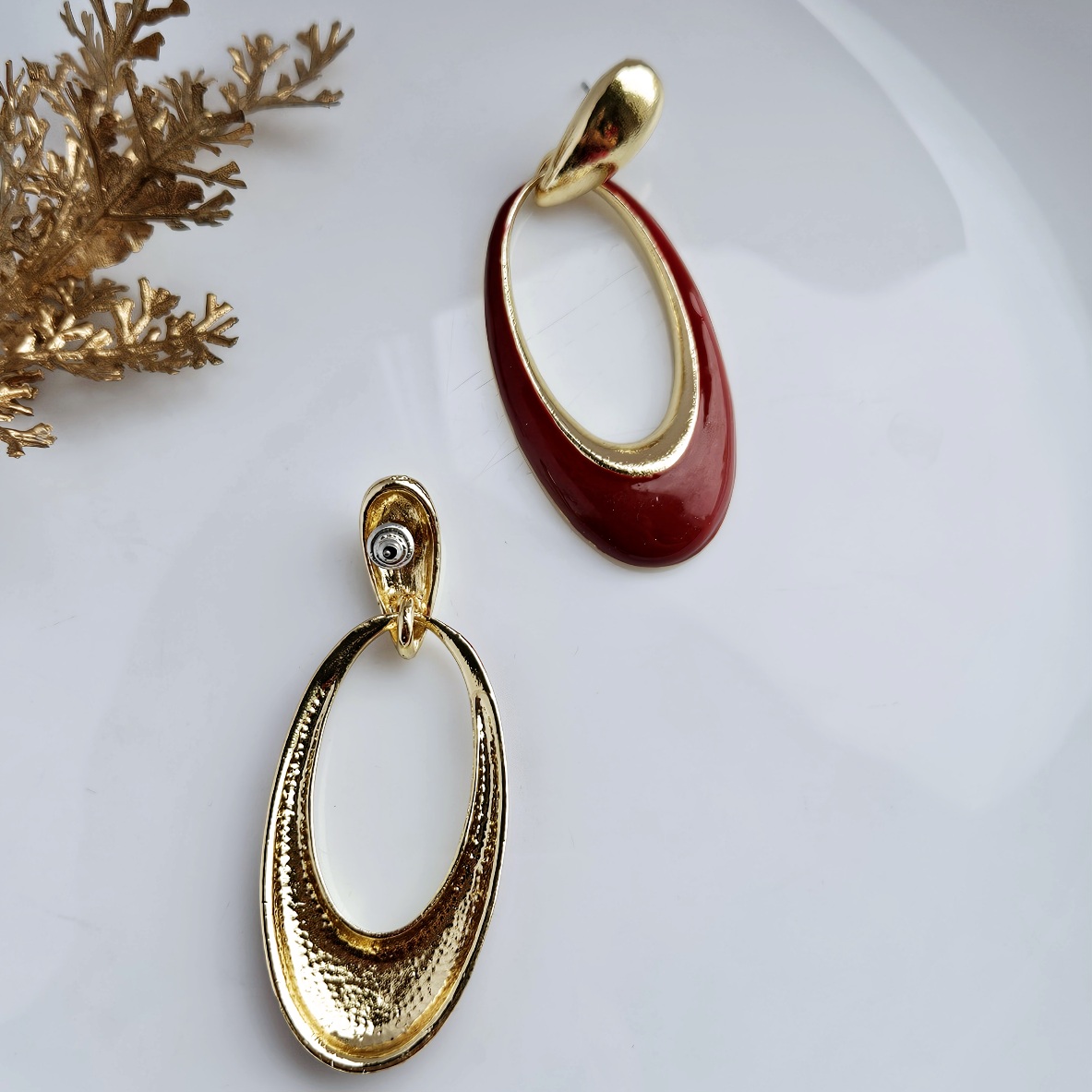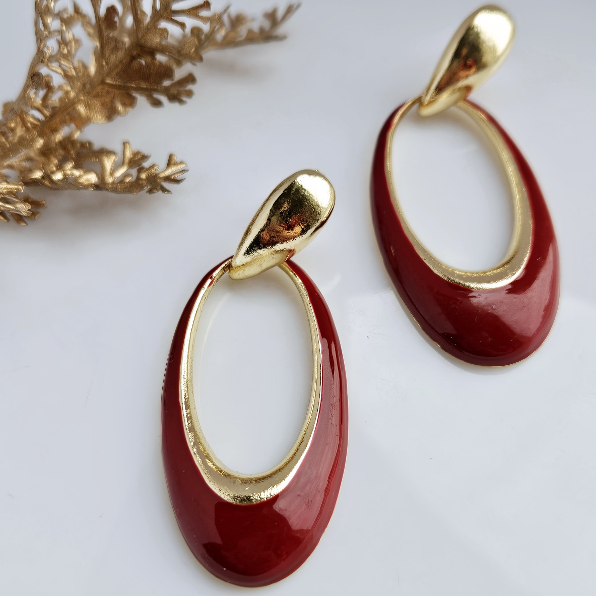 Raudonos spalvos ilgesni auskarai
