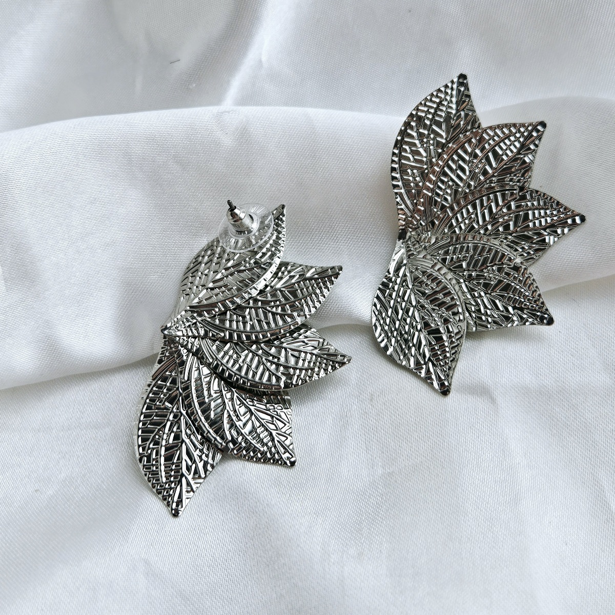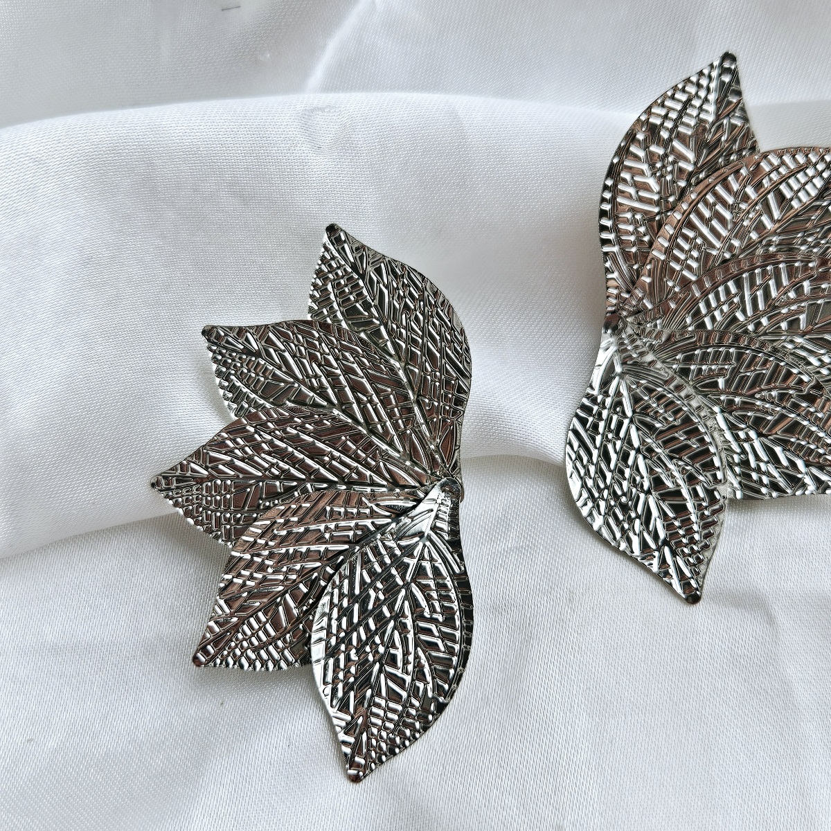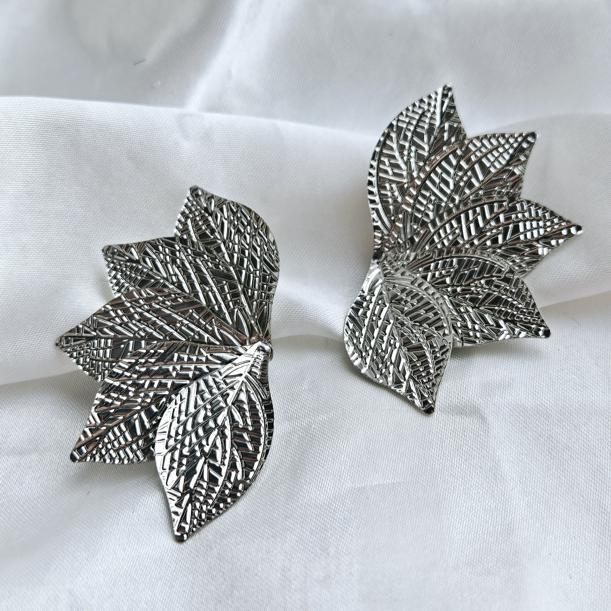 Sidabro spalvos lapų dizaino auskarai